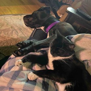 Peppa gets along well with both dogs and cats in her foster home, though she may give chase if a cat runs. She’s a big fan of walks but could use some leash training to help with pulling. With her love for cuddles, chew toys, and walks, Peppa is the perfect mix of playful energy and sweet companionship!