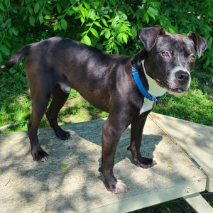 Bert is a sweet young dog that loves attention and giving kisses. This handsome boy is house trained and crate trained. He is smart and will do anything for food. New smells and sounds make him nervous, and he has to stop and decide if they are scary or not. It is cute to watch his mind work and when he decides not scary, his tail wags his whole butt and the kisses come out. Bert likes other dogs and children. Cats are unknown. He is still young and jumps and mouths sometimes, so a house with young children isn’t ideal. He is learning what is appropriate to chew on and what’s not. Bert walks well on leash and rides nicely when you get him in the car. He wants to be with his people all of the time and puts himself in the middle of whatever you are doing. He is curious and must know if there is food involved. Bert would like to live with someone with patience and a sense of humor.
