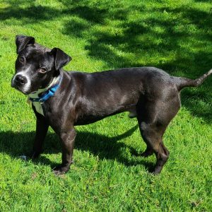 Bert is a sweet young dog that loves attention and giving kisses. This handsome boy is house trained and crate trained. He is smart and will do anything for food. New smells and sounds make him nervous, and he has to stop and decide if they are scary or not. It is cute to watch his mind work and when he decides not scary, his tail wags his whole butt and the kisses come out. Bert likes other dogs and children. Cats are unknown. He is still young and jumps and mouths sometimes, so a house with young children isn’t ideal. He is learning what is appropriate to chew on and what’s not. Bert walks well on leash and rides nicely when you get him in the car. He wants to be with his people all of the time and puts himself in the middle of whatever you are doing. He is curious and must know if there is food involved. Bert would like to live with someone with patience and a sense of humor.