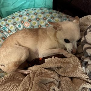 When he’s not soaking up attention, Bruiser is perfectly content snuggled up in his personal little den. He’s pee pad trained, so you can skip the rainy outings — this toothless wonder prefers warmth and comfort.