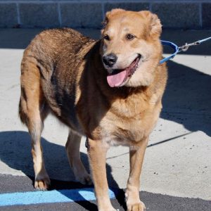 Meet mellow Charlie, a shepherd/lab mix who is about 10 or 11 years old. After living in a home his entire life he was taken to a shelter as a child in the home was severely allergic. Charlie has arthritis in his knees and is on a medication that is giving him a lot of relief. He loves leisurely short strolls and also car rides (might need just a little boost in.) He gets along with dogs but can also happily be an “only dog.” We would love to find Charlie a home that has a cat or two. In his former home the resident cat used him as a big pillow! Ideally a one story home would suit him, and one where someone is home most of the time. He is very companionable and likes to be included in everything—- watching you cook or even just while you relax and read. This soulful gentleman likes to give paw for a “shake” and has great smiling eyes. He enjoys the simple things in life: a breeze to sniff, a warm bed, a friendly pat. Maybe Charlie is the dog for you!