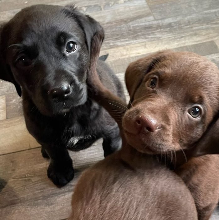 Three Lab mix female puppies, 1 chocolate and 2 black, should be large and have medium length coats, since mom is 90 pounds and has a longer coat. At 8 weeks they are about 15 pounds each. These are not apartment dogs! Outgoing, well socialized, mainly laid-back personalities. First step is the submission of an application, available at www.capp-petplacement.org/adopt $400 adoption fee includes distempers and rabies inoculations, several wormings, and spay or neuter.
