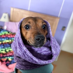 If we had to sum up Churro’s motto in one sentence, it would be — play hard, snuggle harder. This snack-sized pup is always game for a walk or — his favorite — chasing his foster siblings around the yard. Snow? No problem! Give him a sweater and Churro readily keeps up with much larger dogs even in chilly temperatures. He loves chasing and carrying around a ball, but hasn’t learned to bring it back for fetch just yet. He’s all puppy in attitude!