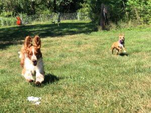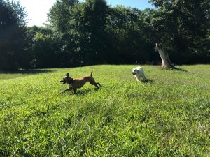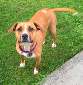 Cottonelle, or Nellie as she likes to be called, has returned to us and is looking for another home. Nellie is polite with other dogs and likes to play, and has been appropriate and respectful with the dogs she has been around. But Nellie was returned because she was having issues with other dogs in the home, so, Nellie might do best as an only dog. Nellie however is great with cats, and even helped raise some rambunctious kittens when she was first with us. But people are what matters the most to Nellie – she is a true velcro dog who will make sure you never pee alone, and will never refuse an invitation to snuggle. Nellie has great house manners too, as long as you don’t mind her joining you on the couch. She does well in the crate, although if you are home and she is crated she will let you know she’d much rather be out with you. Nellie enjoys walks, and playing in the yard, but she is not a high energy dog. Nellie had knee surgery three years ago so while she is an active dog she is not a good candidate for a jogging companion or sport dog, and she should be kept on joint supplements. She needs to avoid becoming too heavy, but at a recent vet visit it was recommended that she gain a few pounds, as she is quite thin. At heart, Nellie is a companion dog, eager to be with you, snuggle with you, and will listen to you for hours no matter what you want to talk about. Nellie has not been left for a full work day in a long time and we are not sure how she would do with eight hours in a crate, so someone with a flexible or split schedule may be the best match for her.