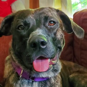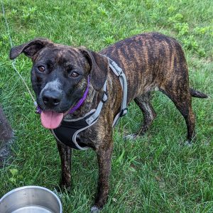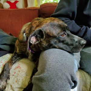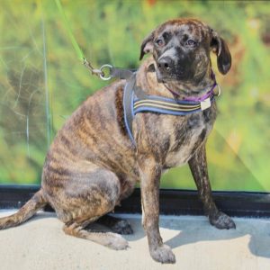 Dulce is a sweet and gentle young lady. She is happy snuggling with you on the couch or playing with a stuffy at your feet. Her favorite place to be is wherever you are. She is full of wiggles when you come home and loves a good romp around the yard. Dulce is learning not to pull when she’s on a leash and she is very close to being housetrained. She is excellent in her crate and will spend time in there with the door open so she can enjoy a chew toy away from the other dogs.