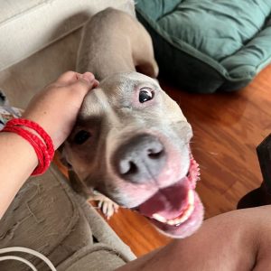 Edith loves other dogs and would be thrilled to have a canine companion who can match her goofy energy. We think she would also do well with sturdy kids. She’s a bit too interested in cats to live with them unfortunately, but Edith will make up for it by giving so much love on her own!