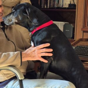 Hayes is a happy, affectionate boy who truly loves his people. He’s happiest when he can sit right next to you on the couch — preferably touching. He forms close bonds and enjoys being near his humans as much as possible. He greets visitors with friendly enthusiasm and may jump up in excitement while saying hello.