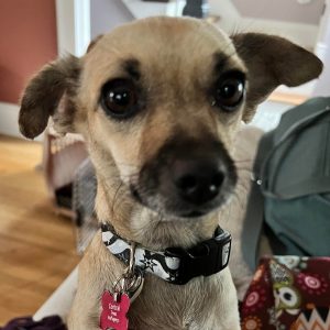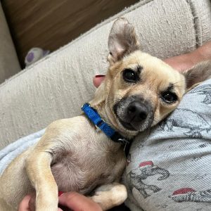 Seeking an adorable cuddlebug to be by your side? Look no further! This sweet little peanut is the perfect snuggler and loves to cozy up to her person as much as possible! Mitzi can initially be timid and shy in new environments (best suited for older children), but has come out of her shell so much already and will continue to grow her confidence alongside her person. She is getting comfortable with leash training but prefers slower walks and is not quite ready for long walks. Mitzi has no problem climbing stairs and loves to be picked up and carried around. She is fully potty-trained and is able to be by herself at home while her foster parents are at work or stepping out for errands. She is very well-mannered and would take to training very easily.