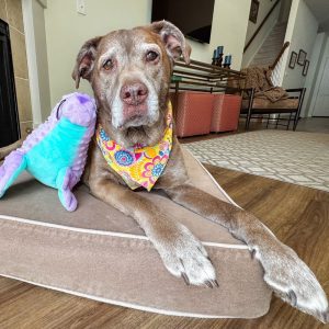 Meet Nika… an elegant and delightfully seasoned chocolate Lab with a warm heart. Nika makes time for sunshine on her face, watching squirrels go about their very important business, and enjoying relaxing walks or leisurely strolls around the yard. Her nose works overtime because she is fully committed to sniffing all the sniffs. And when it comes to the finer things? Nika absolutely excels at snacks and naps.