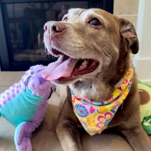 Nika is housebroken, has a delightfully silly personality, and when she gets excited she breaks out her signature happy dance, guaranteed to make you smile. She currently lives with two other dogs and does well with them, but she’s a little too interested in cats, so a cat-free home would be best.
