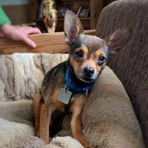 Got some cheese? Get ready, little “Roo” will be in your pocket before you know it! He’s a little timid initially, but quickly warms up with the promise of food. He follows his foster mom around with a wagging tail, eagerly waiting for some cuddles and snacks. Did we mention he’s an expert snuggler? Roo loves to tuck himself into your arms for a nice nap. He could snooze in your lap all day — he’s a very low-key, mellow kinda guy. He rides nicely in the car and is working on housetraining. He’s one of the least vocal Chihuahuas you’ll meet, quiet as a churchmouse! He gets along well with the other small dogs in his foster home, but is more focused on the humans. He would also be fine with cats. Roo will do well in a quiet home with someone who is home more often than not. No young children or large dogs please. If you spend a lot of time on the couch and want a pup who is content to just be, Roo is your guy!