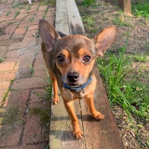 Got some cheese? Get ready, little “Roo” will be in your pocket before you know it! He’s a little timid initially, but quickly warms up with the promise of food. He follows his foster mom around with a wagging tail, eagerly waiting for some cuddles and snacks. Did we mention he’s an expert snuggler? Roo loves to tuck himself into your arms for a nice nap. He could snooze in your lap all day — he’s a very low-key, mellow kinda guy. He rides nicely in the car and is working on housetraining. He’s one of the least vocal Chihuahuas you’ll meet, quiet as a churchmouse! He gets along well with the other small dogs in his foster home, but is more focused on the humans. He would also be fine with cats. Roo will do well in a quiet home with someone who is home more often than not. No young children or large dogs please. If you spend a lot of time on the couch and want a pup who is content to just be, Roo is your guy!