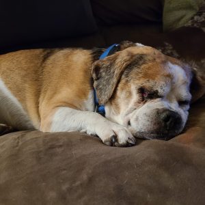 Our little buddy here is quite a character. He is a companion dog whose favorite spot is in his person’s lap. He is curious and wants to be friends with everyone but is a little scared at first. Scooby would do best in a quieter home with someone to follow around all day. He gets along with other dogs and will snuggle with them when he feels comfortable. Cats are unknown but we think he would be fine with them. He really just wants everyone to love and be nice to him. Scooby’s previous life was a bit limited to his home and yard. So he is learning to enjoy going on walks and discovering new things. He is curious and just needs to build confidence. He has an old injury to the skin under his right eye. It does not affect his vision and Peppertree is having him seen by a specialist for repair. Scooby will need a fenced yard because he won’t potty on leash. His foster mom says he is quite the character. He also has to sleep in bed with his person. This is something Scooby Doo won’t compromise on!