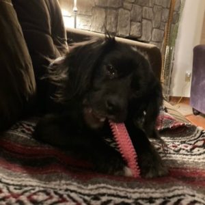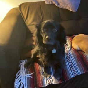 Starsky is an energetic little love bug, looking for lots of hugs and kisses. His favorite place is on a lap, but he settles nicely into his favorite chair when his human is busy. He is very playful and would love a doggy playmate, but takes cues from his foster canine siblings and walks away when rebuffed. Starsky would benefit from having another dog in the house to help him settle in. Cats are unknown.