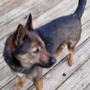STEWART, 3 yo neutered male Elkhound mix (best guess, we truly have no idea),40#. Stewart came to us from a difficult situation. He is an active, happy boy, well socialized with other dogs although he may be too playful for most cats. He loves people and interacting with humans is one of his favorite pastimes as well as collecting and playing with toys. Baxter is a busy boy and needs a household that is active–walking, hiking, just out and about with him doing new and interesting things. He is very smart and should excel at agility or other training. He is crate trained and housebroken if kept on a schedule. Another dog to play with and a fenced yard would be ideal. Stewart’s antics are sure to bring a smile to your face. This boy is ready for a new home and to have new experiences!