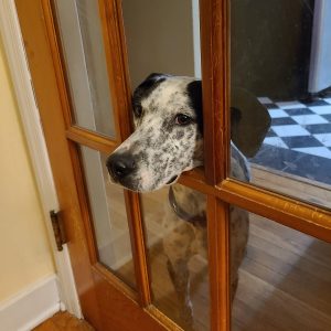 Talia is a sweet, energetic young lady. She loves to play with toys and have adventures. She likes other dogs and kids. Cats are unknown. Talia is house trained and not destructive. She is good on leash except that she wants to sniff and explore everything. She is learning her basic manners but needs continued work to teach her about personal space. She needs plenty of exercise and would be a great hiking buddy. Talia’s favorite thing is snuggling. She loves attention and sleeping with her person.