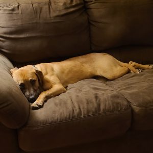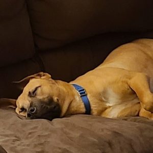 Although we don’t know Tawny’s breed mix, we know for sure she is a great dog. Tawny is a silly young girl that loves to play with her toys and have adventures. She is up for anything, anytime. She enjoys playing with kids and other dogs, car rides, and walks. She has plenty of energy and curiosity to go hiking all day. Tawny walks pretty well on leash until…SQUIRREL! She is crate trained, and after some fun, she likes to have a snack and a nap on the couch with her person. Then repeat: play, snack, nap. Tawny is very go with the flow. It is unknown if she can live with cats. Tawny would like to live with an active family that would like to teach her things and keep her busy. She has a lot of love and companionship to give. If you have been looking for someone to trip over (she is always by your side!) Tawny could be your dog.