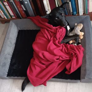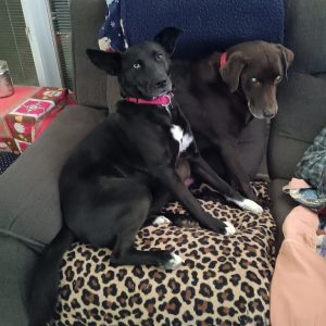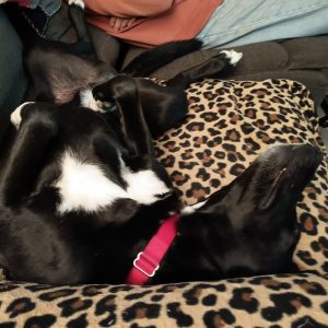 Looking for an active playmate by day, super snuggler by night? Then Twyla is your pup! This three-year-old mix is turbo-charged for long walks and runs but then loves to chill out with her family at night. She is house-trained, crate-trained, and well-mannered in the house, though she has been known to counter surf or pluck good-smelling items out of the wastebasket if no one is looking. She is a great watch dog who barks to alert her foster family of incoming visitors but then greets folks appropriately when she knows they are welcome.