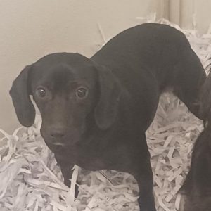 Wilburt is 1-2 year old possibly Dachshund/Beagle mix, as cute as a button! He is a gentle soul who is still learning to trust—a little hand shy and a bit skittish with unfamiliar men but with some time, patience and love warms up beautifully. He loves to cuddle, and really enjoys cookies and chicken treats! He rides fine in the car, is crate trained and doing well with housebreaking but will use papers/pads if he gets caught short. At about 20 lbs Wilburt is the perfect size for couch cuddling. He likes other dogs when introduced gradually and will be a wonderful companion. Cats are unknown but we expect with his gentle nature WIlburt would be fine with them.