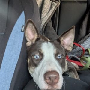 Meet Zia – Your Blue-Eyed Adventure Buddy! Zia is a super friendly and affectionate girl with stunning blue eyes and a gentle, loving temperament. She’s medium to high energy—always eager for a walk or a romp in the yard. But don’t worry—Zia also knows how to unwind and is just as content curling up on a cozy bed next to her favorite people.